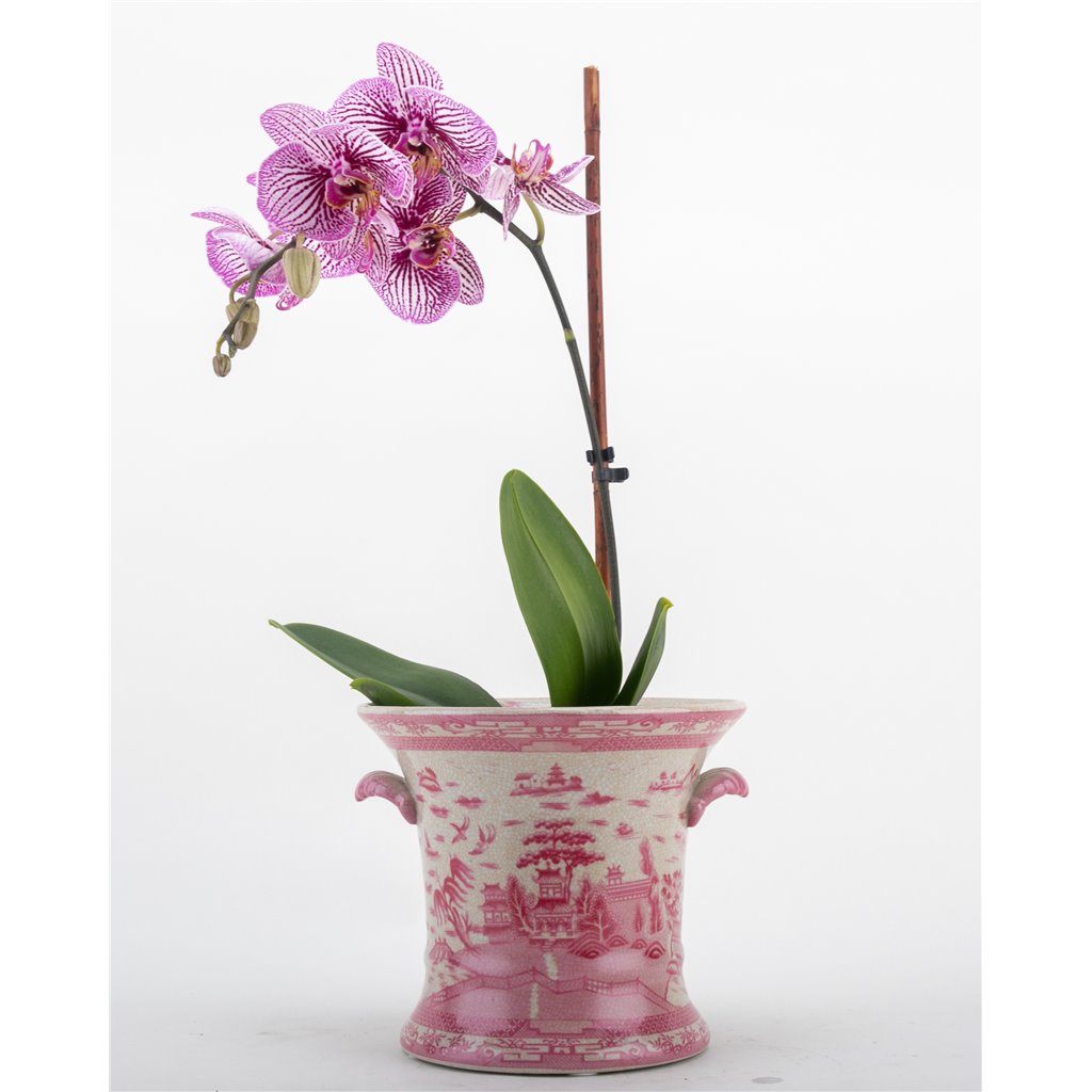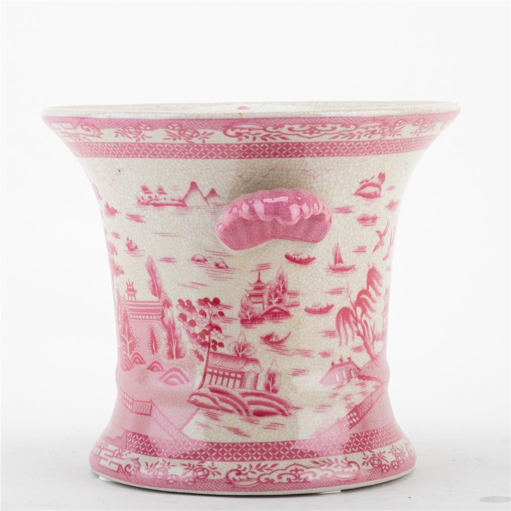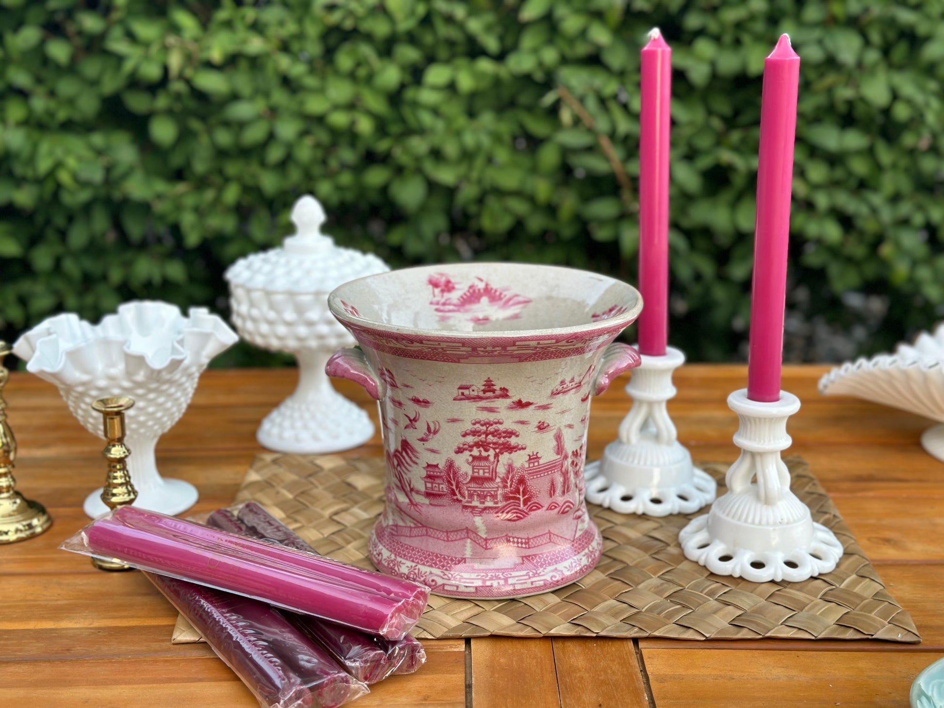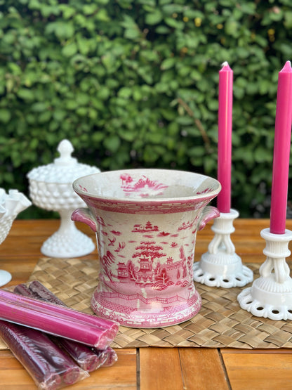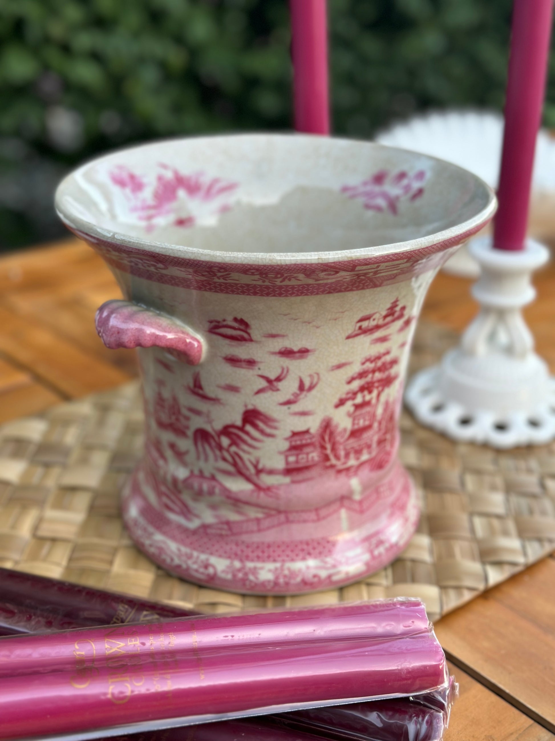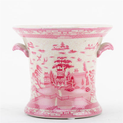 Danny's Fine Porcelain - Pink/White Pagoda Porcelain Jardinière Planter, 7" Tall, 8"D - Pristine!