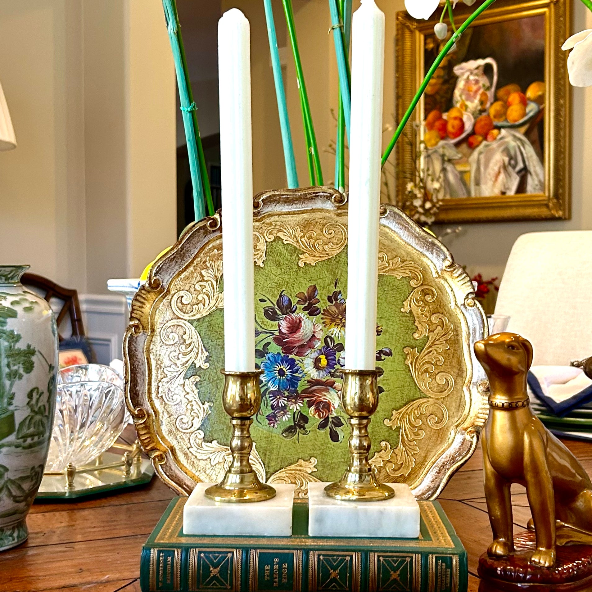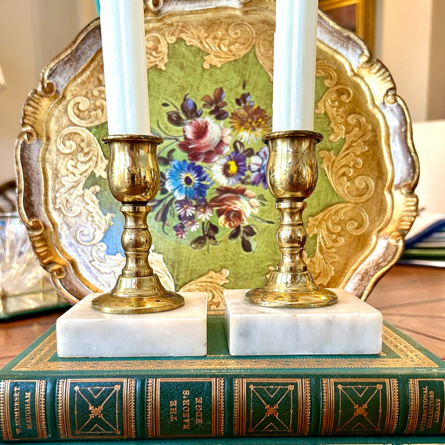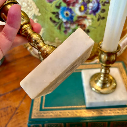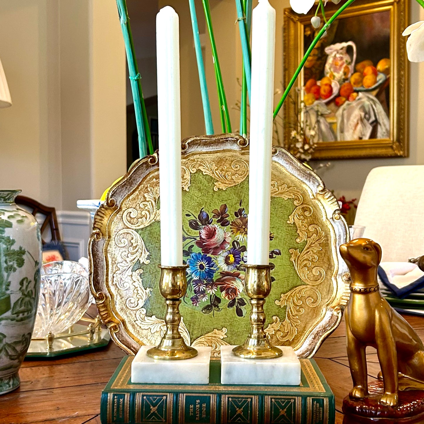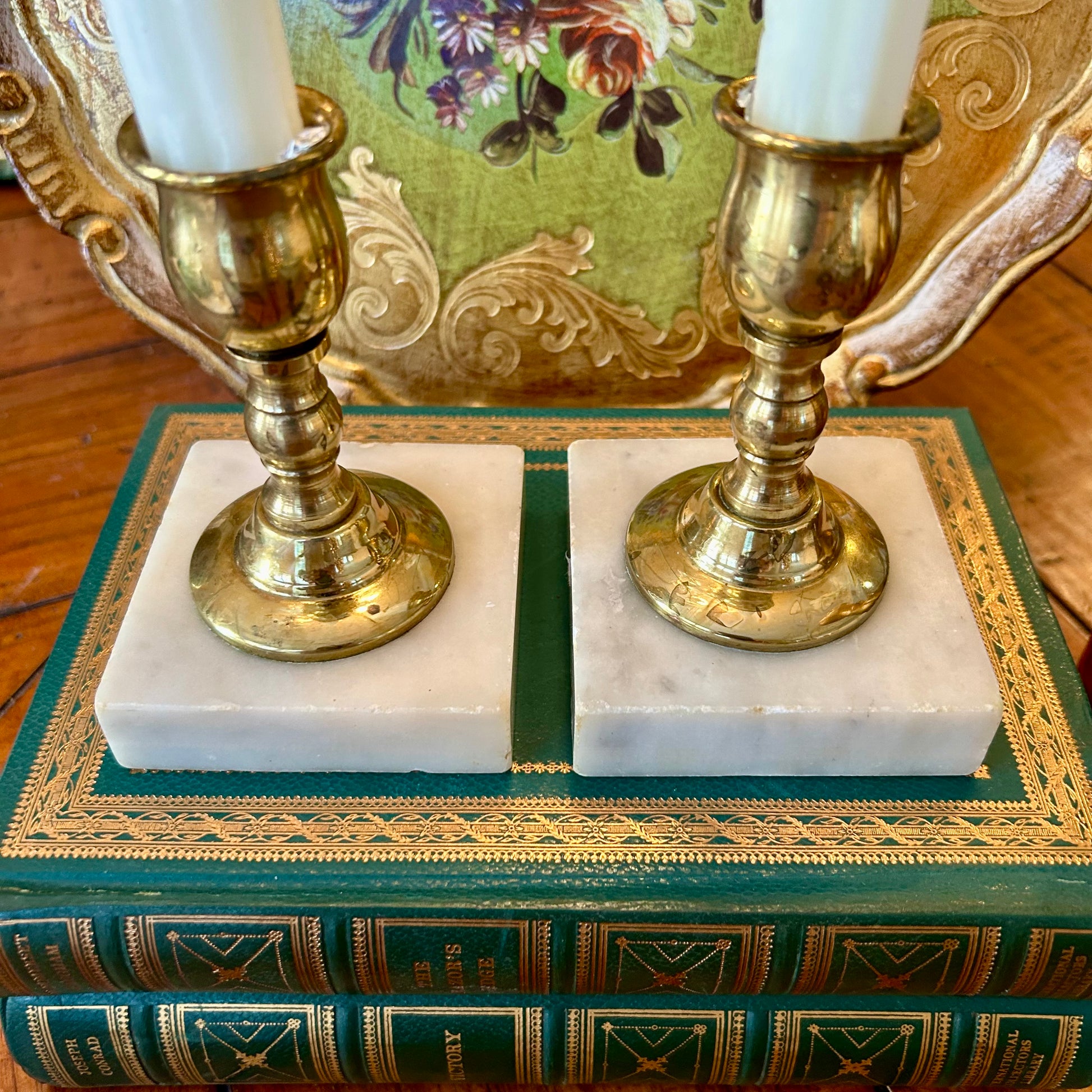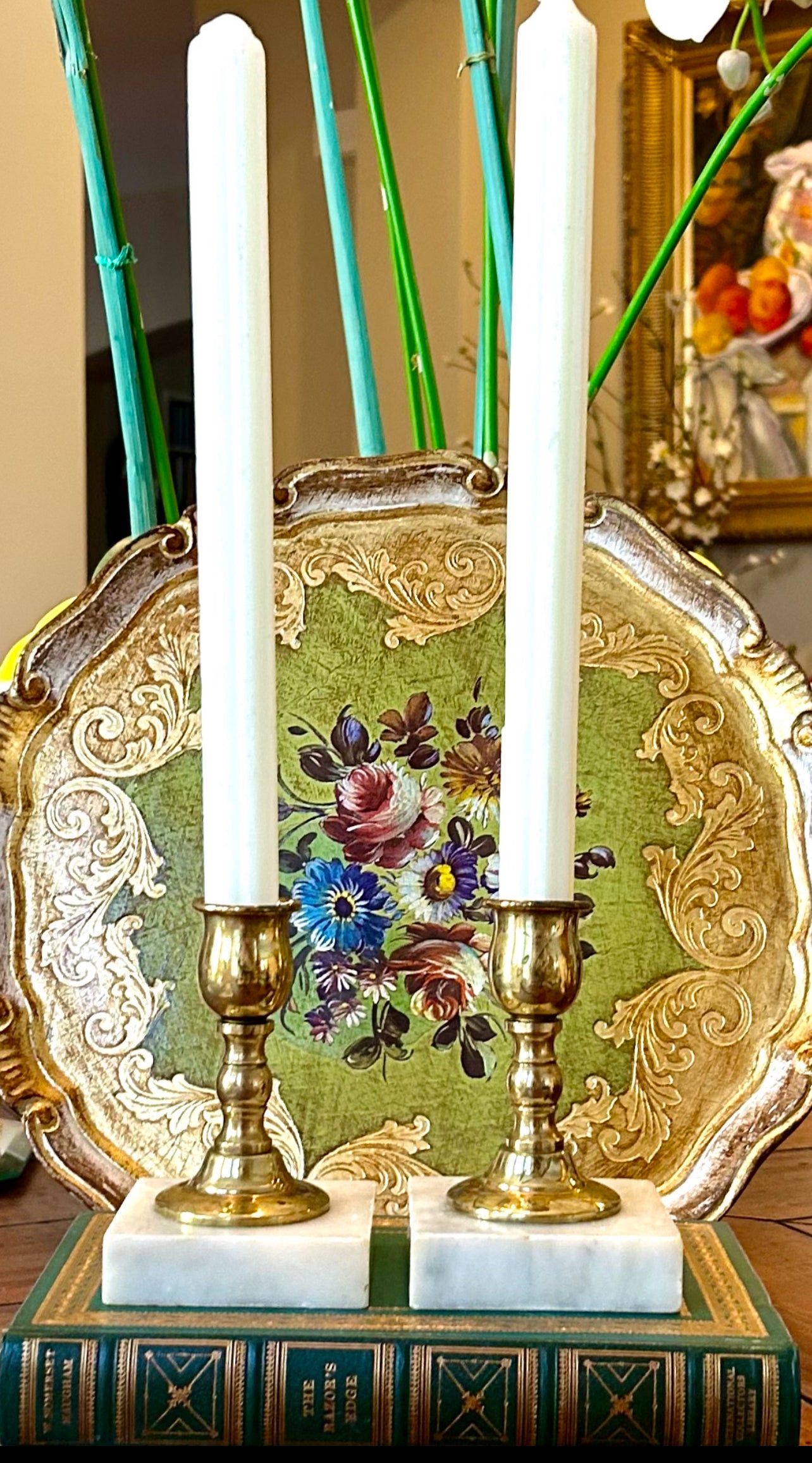 Vintage brass & marble candlesticks 4.5h x 4 x 4 These candlesticks bring beauty and charm to your decor with sophisticated materials and timeless design.