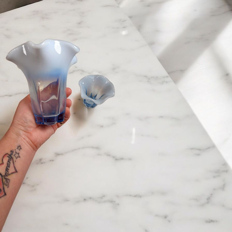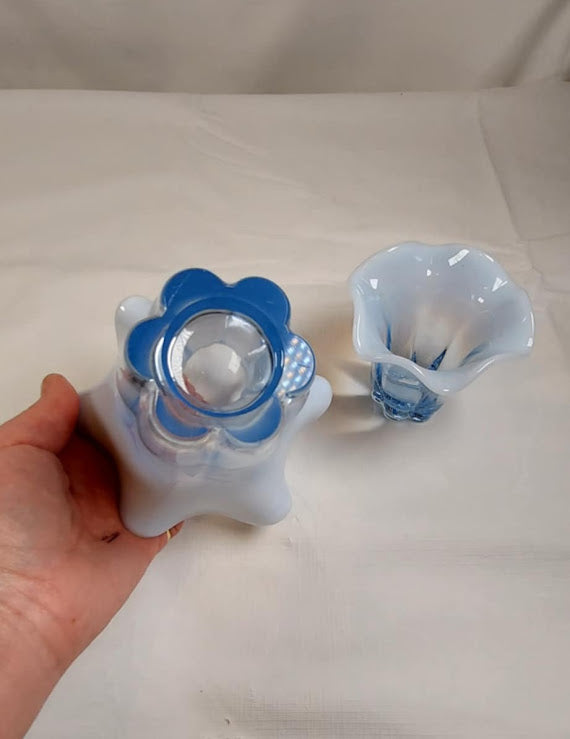 Vintage Duncan & Miller Blue Opalescent Matching Vases