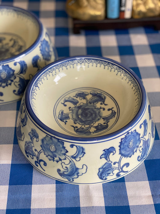 14W X 6” Tall - Hand painted FLORAL - BLUE AND WHITE CLASSIC Bowl