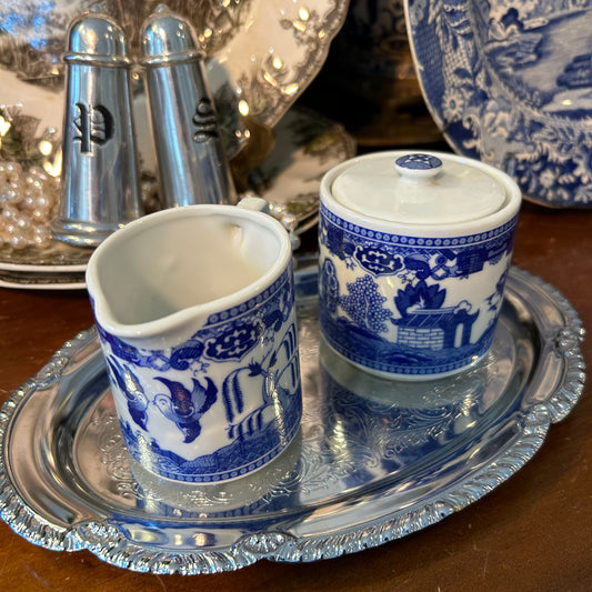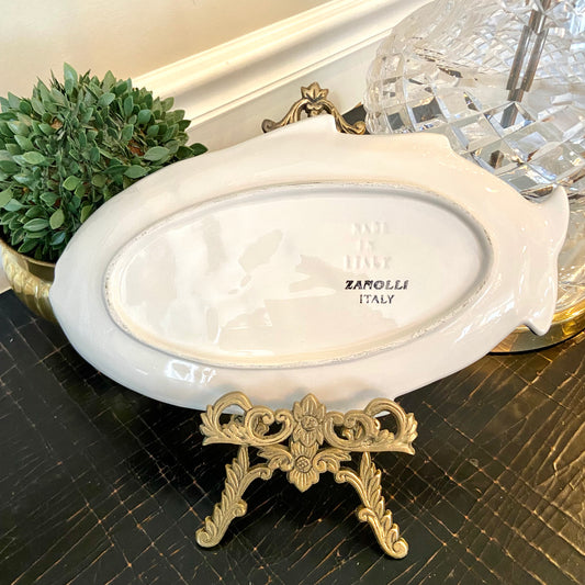 Whimsical vintage porcelain blue and white fish plate by Italian design Zanolli