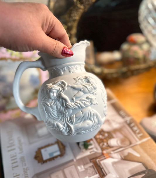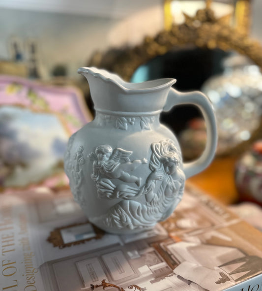 PRISTINE Wedgwood Blue Jasperware Etruscan Jug, circa 1967, 5.5”