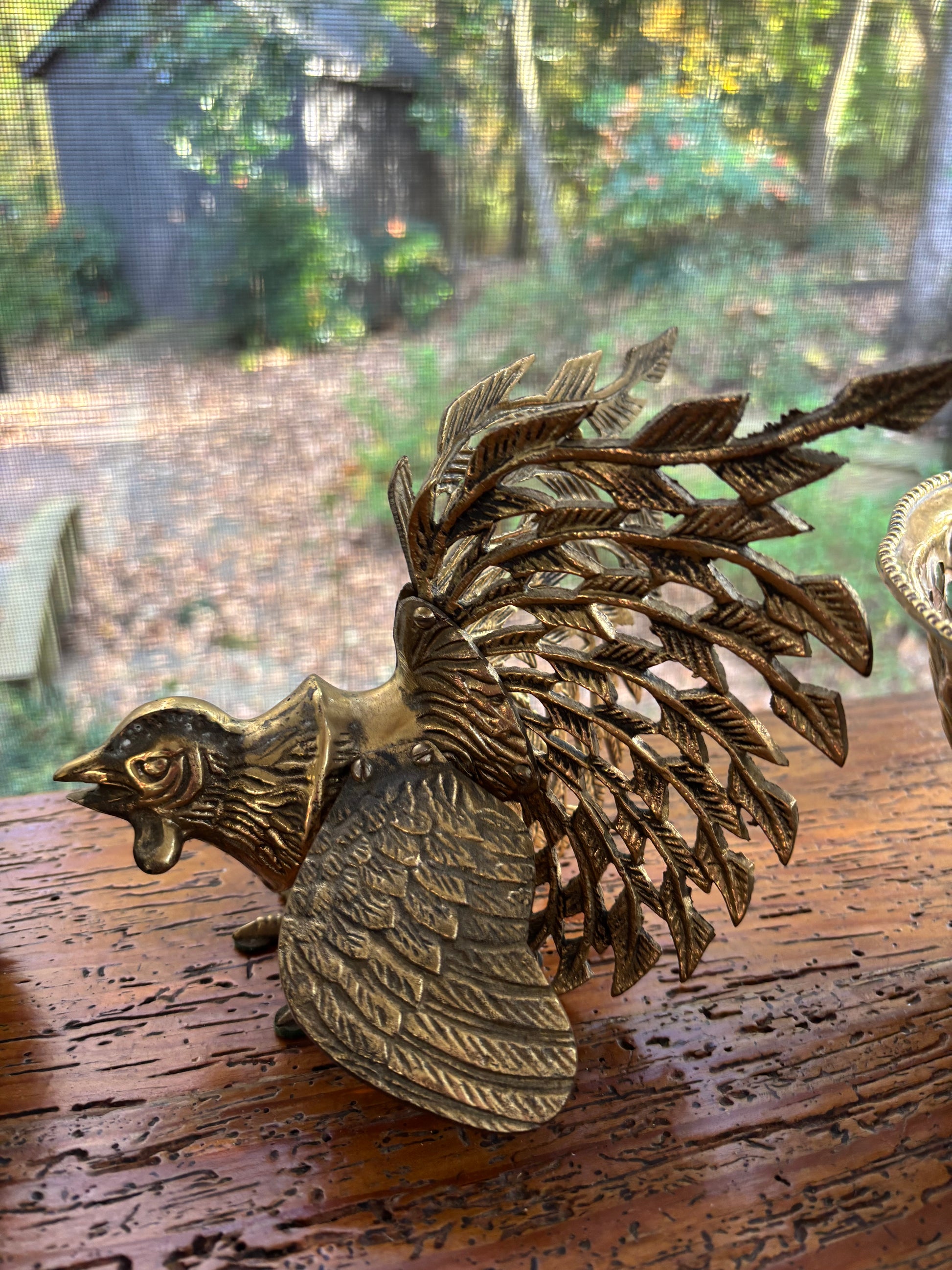 Brass fighting roosters pair! Tallest measures 5.5” tall. Features intricate and ornate brass details!
