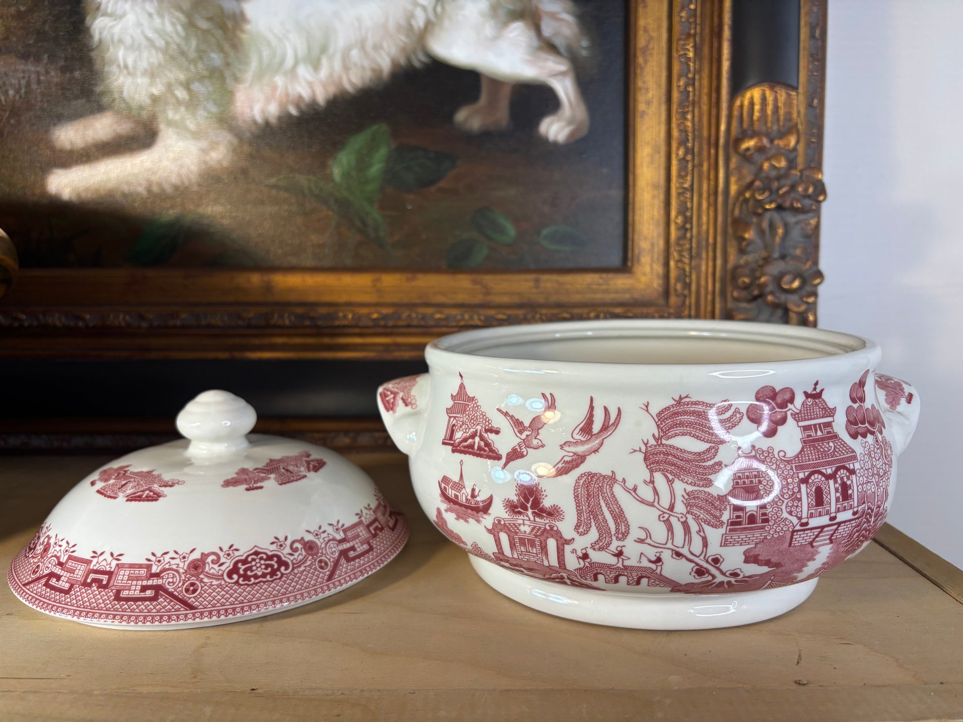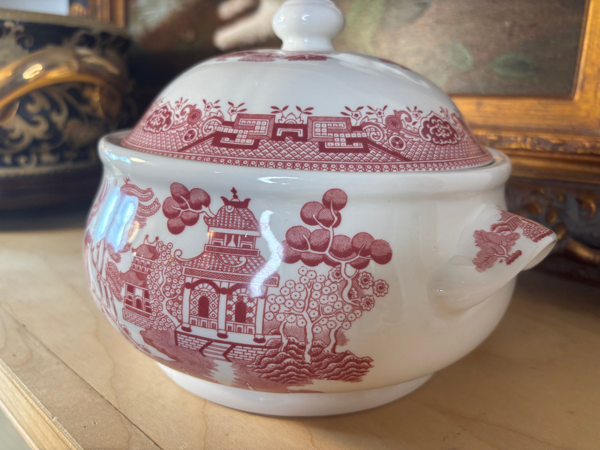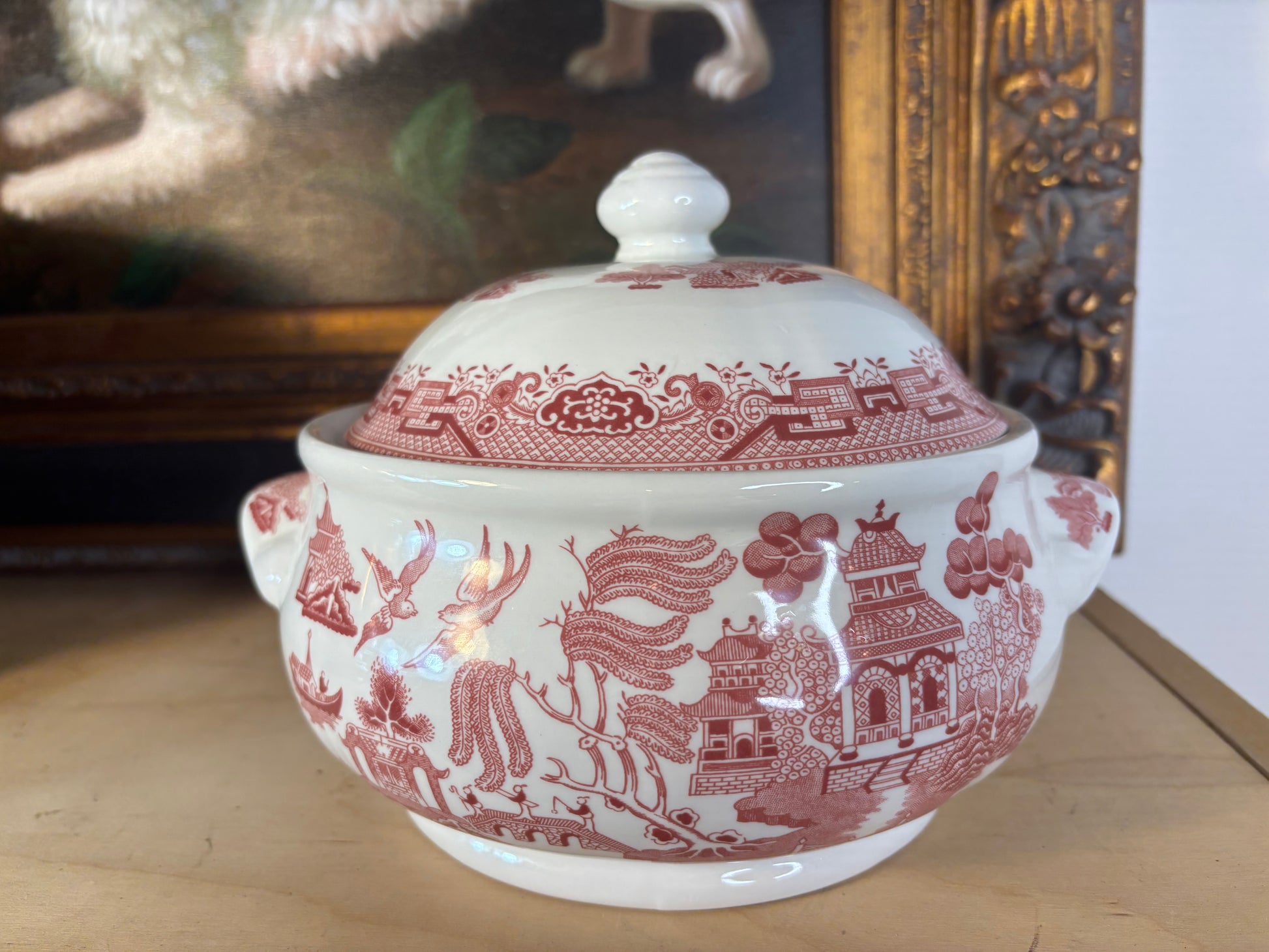 Churchill Pink Willow lidded tureen! In excellent condition! Measures handle to handle 9.5”. Measures 7 1/4” tall to tip of lid.