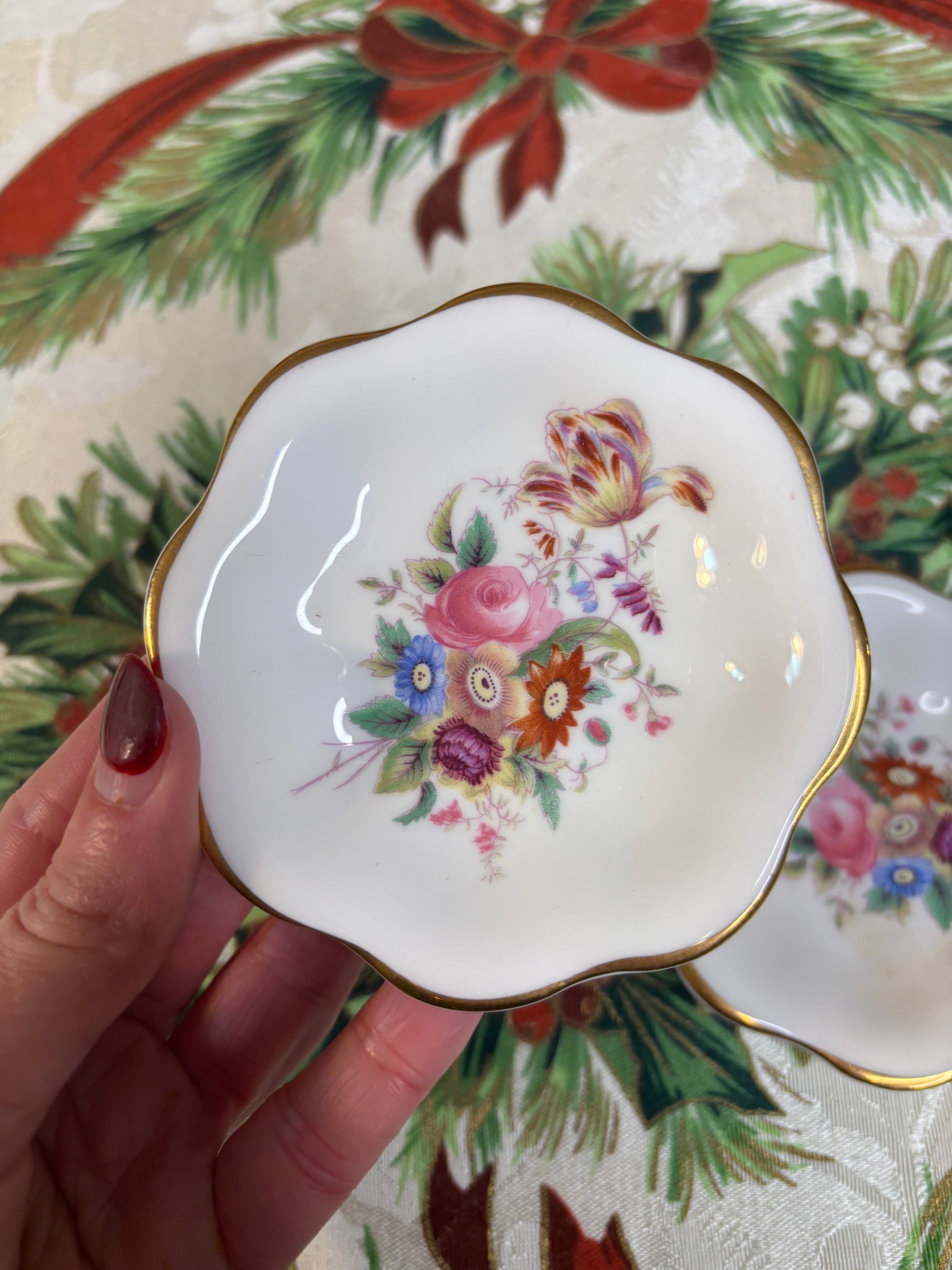 Coalport floral butter pats pair with scalloped and gold edges!