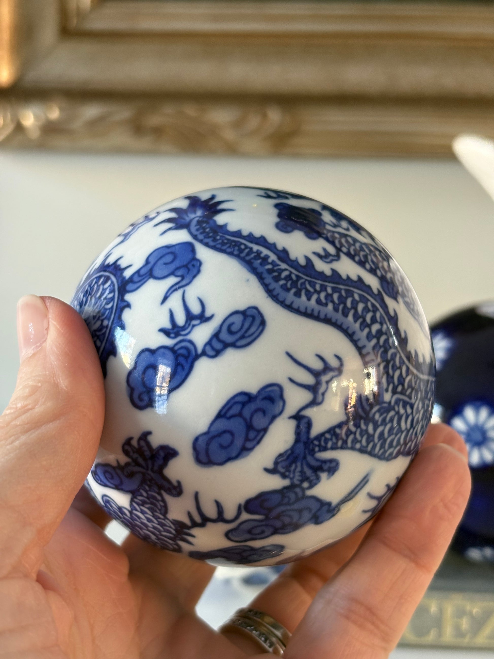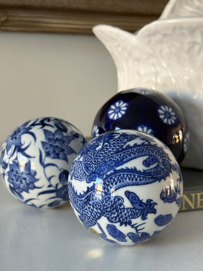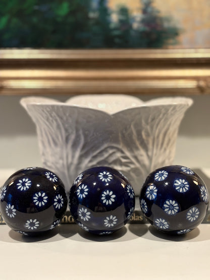 Set (3) Blue and White Carpet Balls