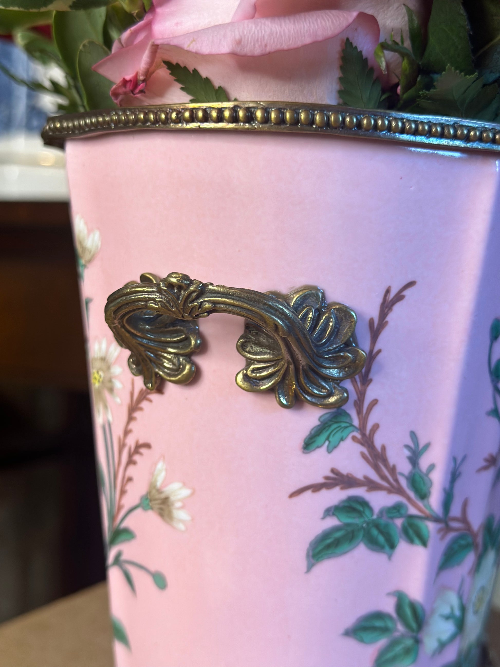 Danny's Fine Porcelain: Pink Floral Footed Basin/ Planter: Birds, Hand Painted, 9x6x7”