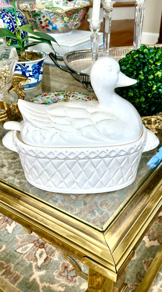 3 piece vintage mallard duck basketweave lidded lidded tureen