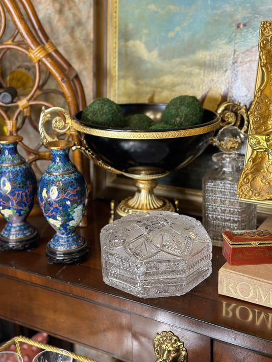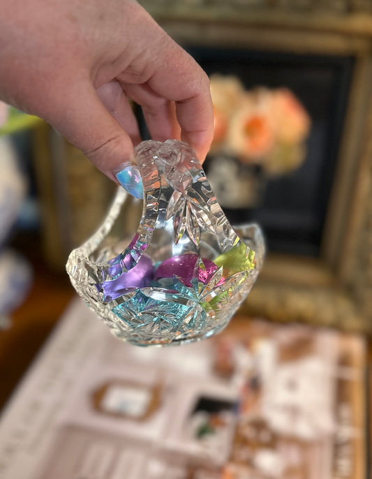 Vintage Hofbauer "Byrdes" Collection crystal basket with cut crystal and bird designs!