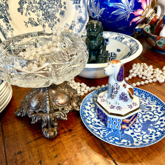 Beautiful bronze , marble & crystal footed delightful centerpiece bowl