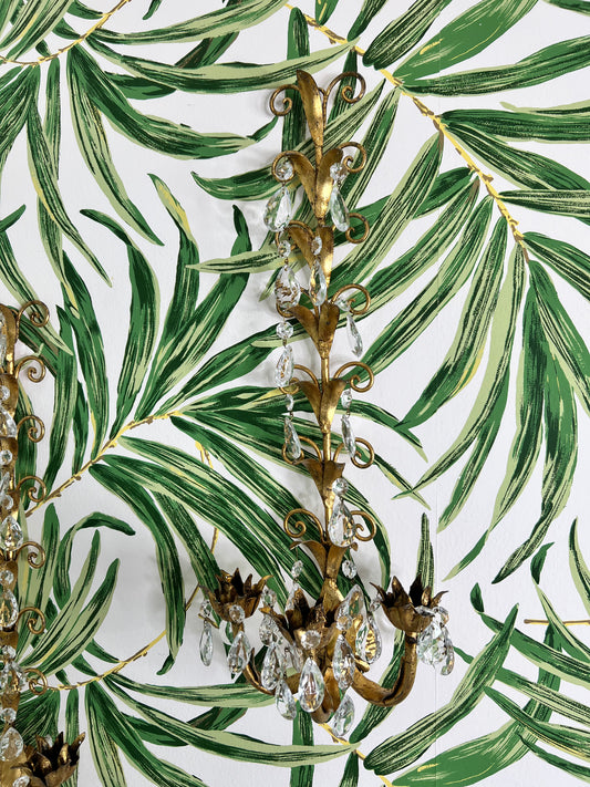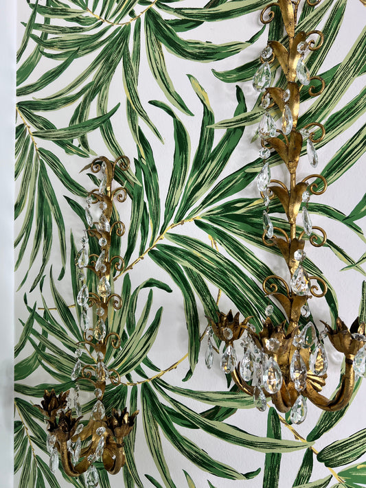 Pair of Vintage Paul Hanson Crystal & Brass Lamps | 33″ Tall - Excellent!