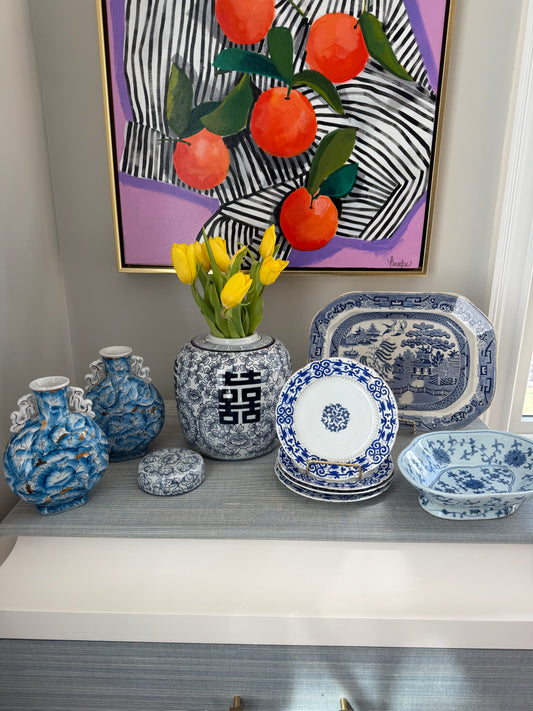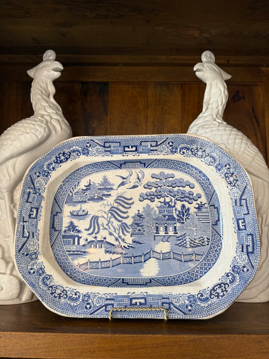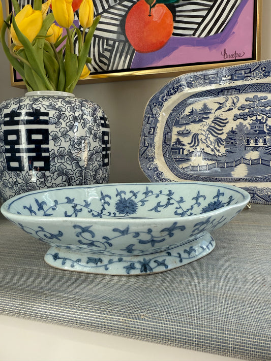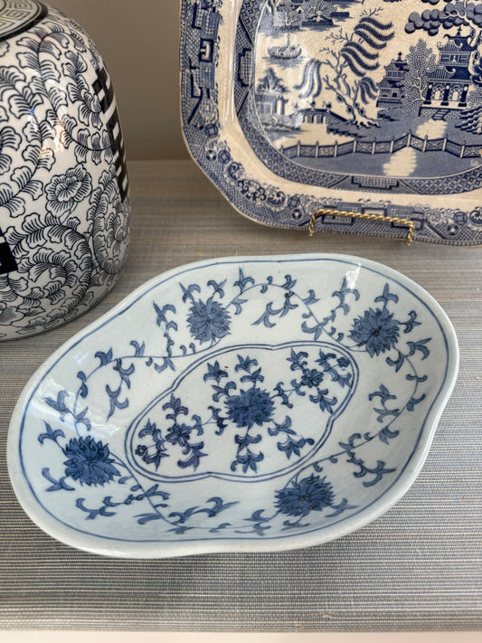 Antique Bok Choy 9” Hand-Painted Shallow Bowl (Rim Chip)