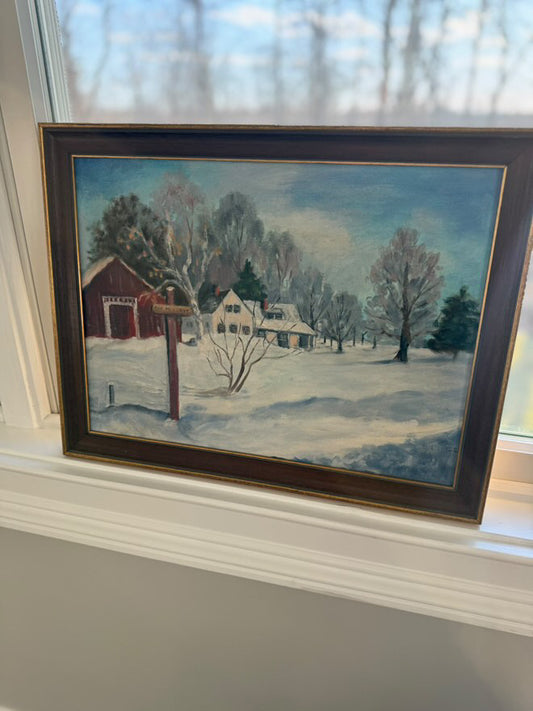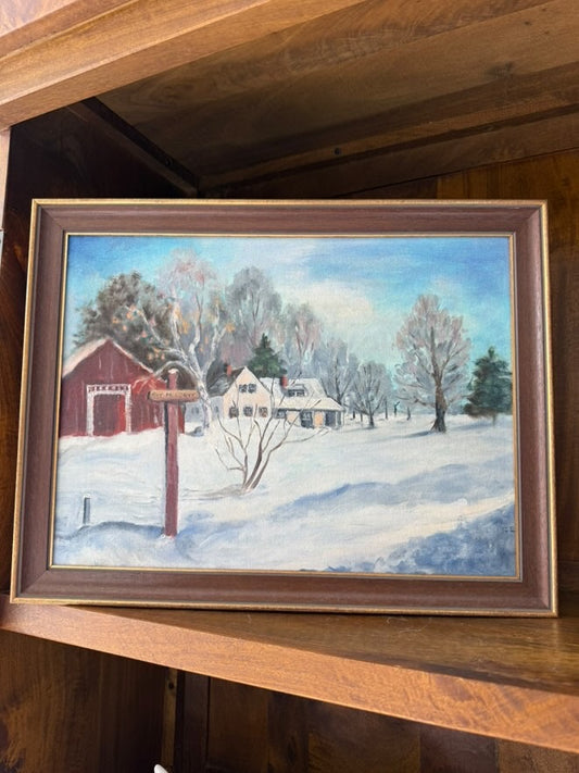 Vintage Signed Original Oil Painting Landscape Red Barn