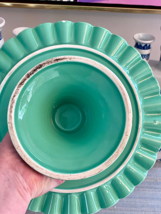 Vintage Green Jade Garland Fine China Set of 11: 4 Dinner Plates + 4 Salad/Soup Bowls + 2 Large 14” Platters + 11” Serving Bowl