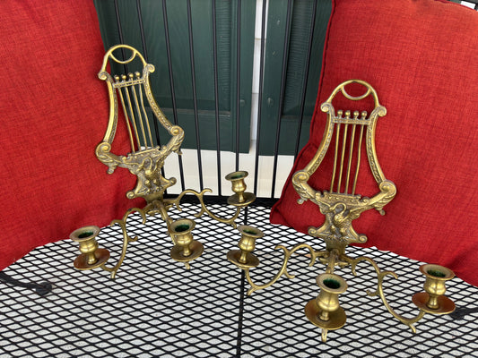 Gorgeous brass wall 25” candleholder sconces with floral and tassel details pair!
