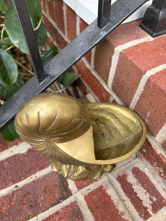 Beautiful large brass planter with grape vine motif, Lion handles, and claw feet! As is!