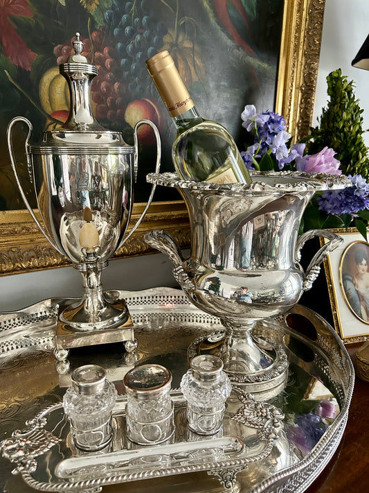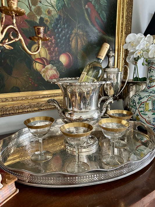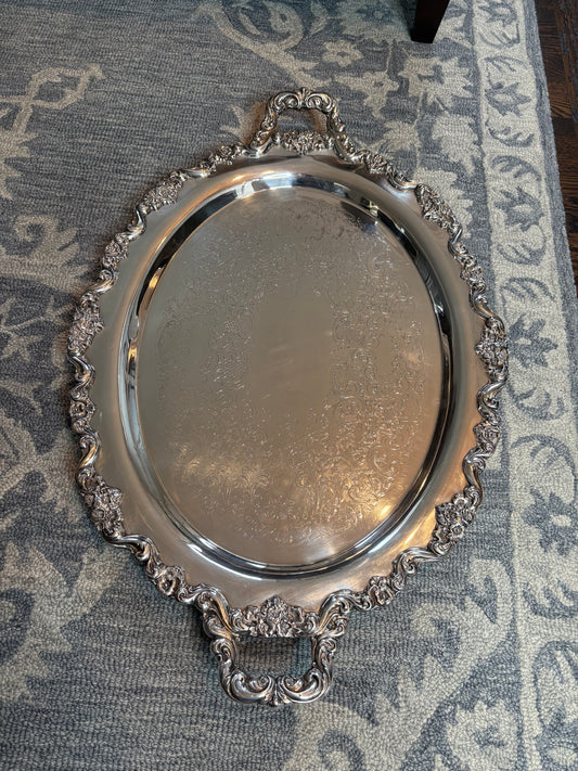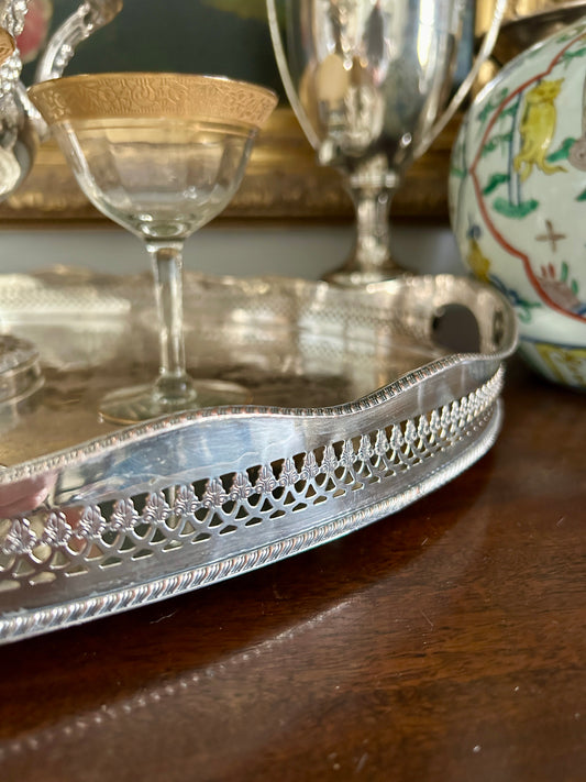 Chic and shiny vintage silver plate reticulated galler tray platter