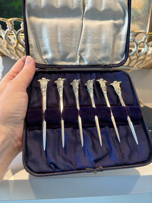 Yeoman Silver Plate EPNS Grapefruit Spoons & Knife Set | Sheffield, England | c. 1950s