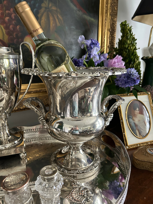 Vintage Silver-Plate & Cut Crystal Claret Jug (Mid-20th Century), 14"