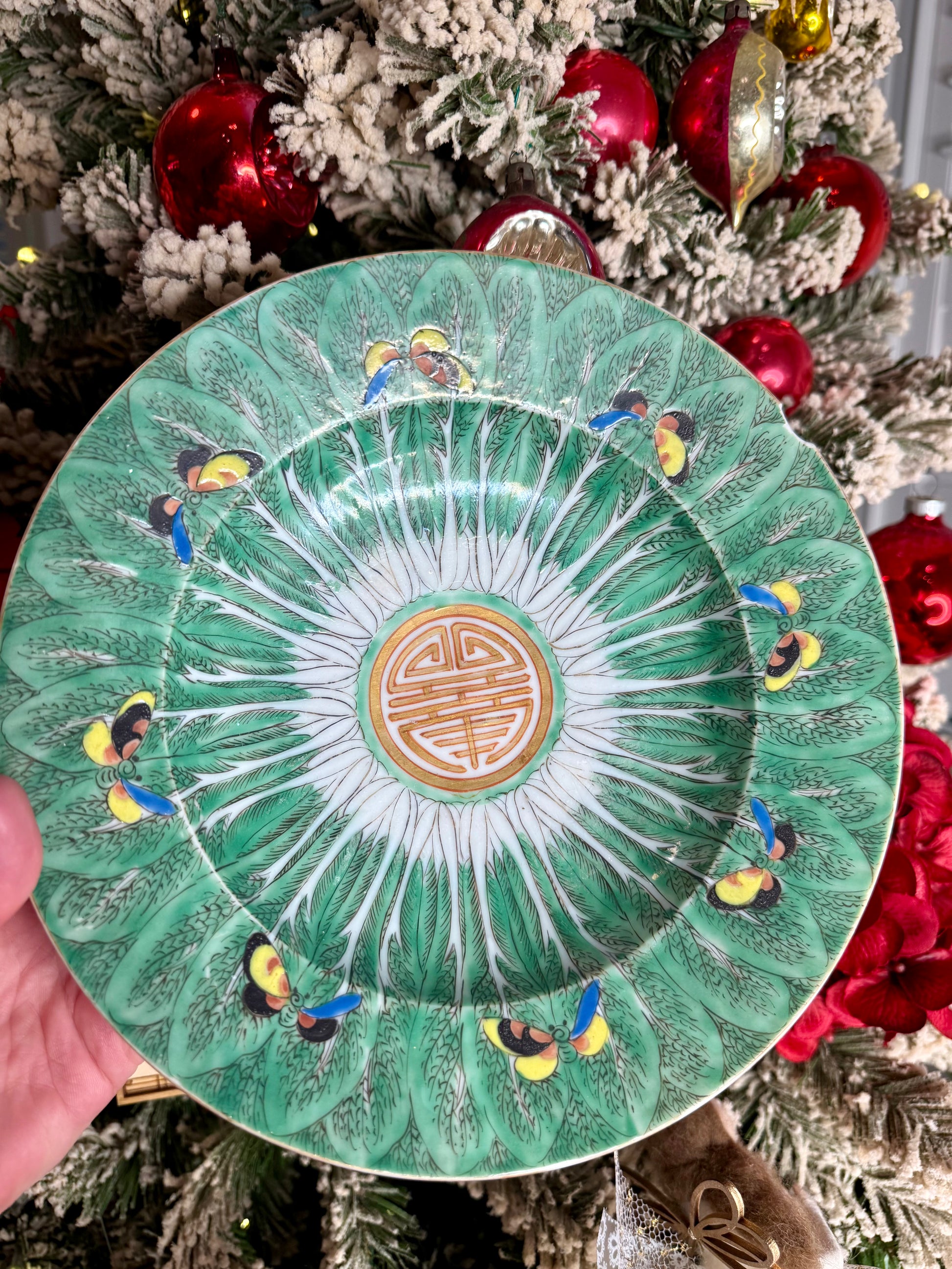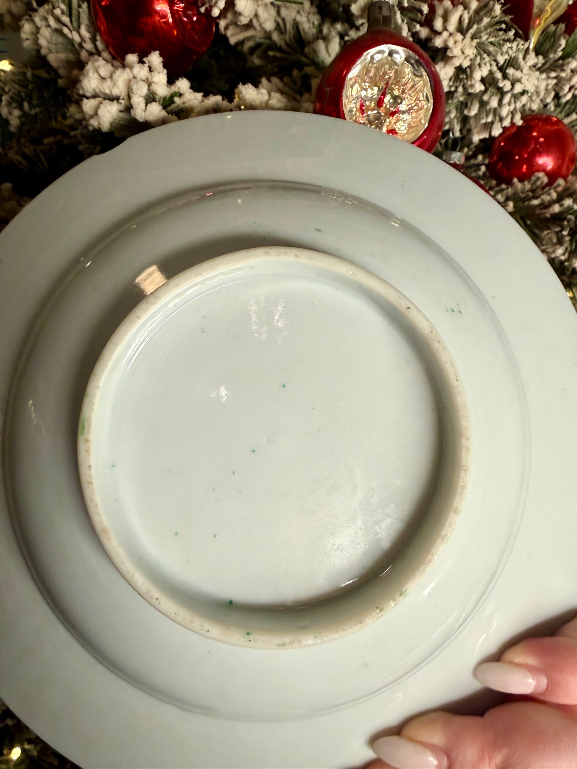 Fabulous and hard to find antique Bok Choy shallow bowl measuring 9” . Gorgeously hand crafted and hand painted . There is a rim chip S shown in photos. Otherwise presents beautifully! This is a 19th century antique.
