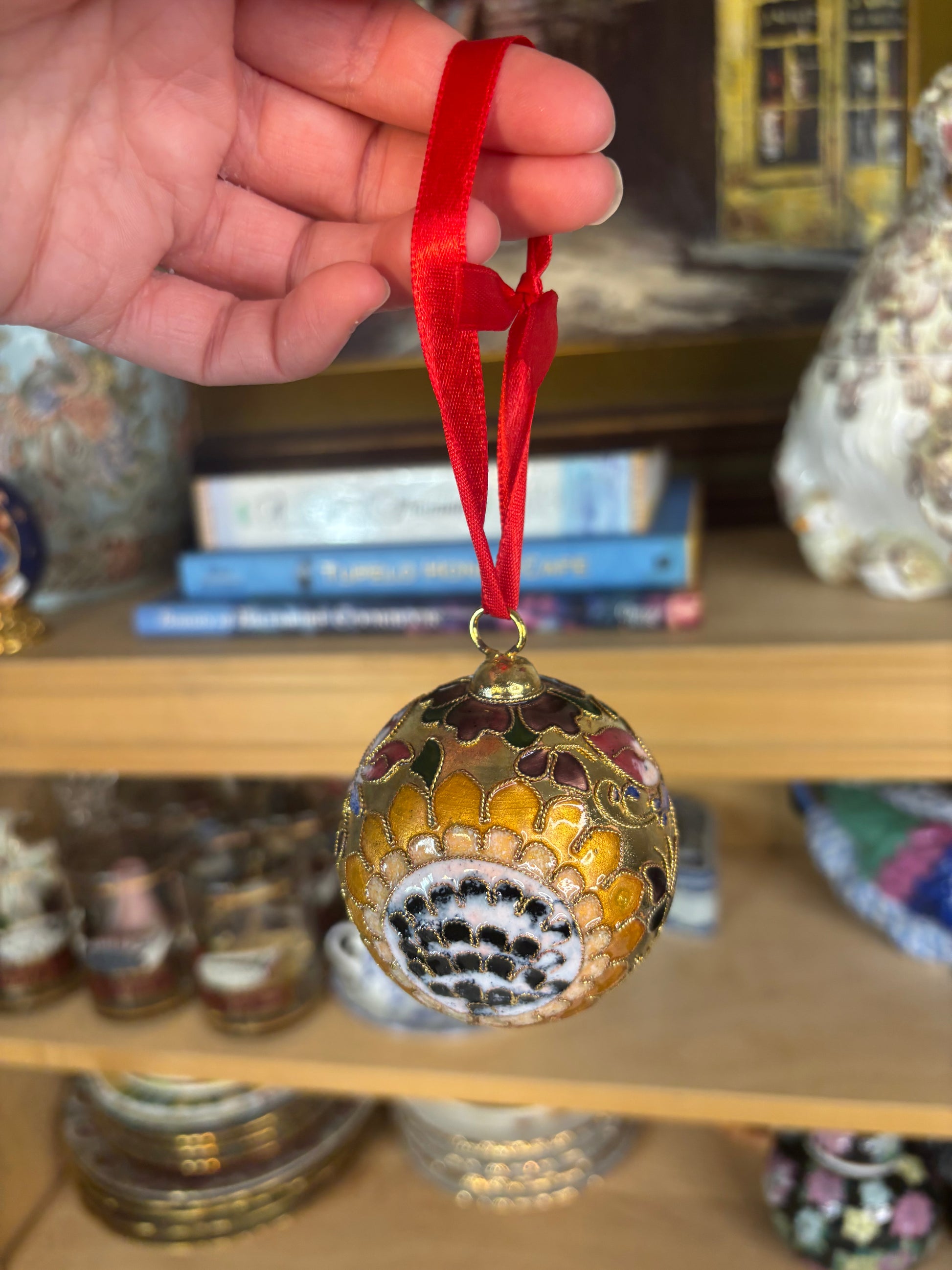 Beautiful sunflower cloisonné ornament with butterflies!