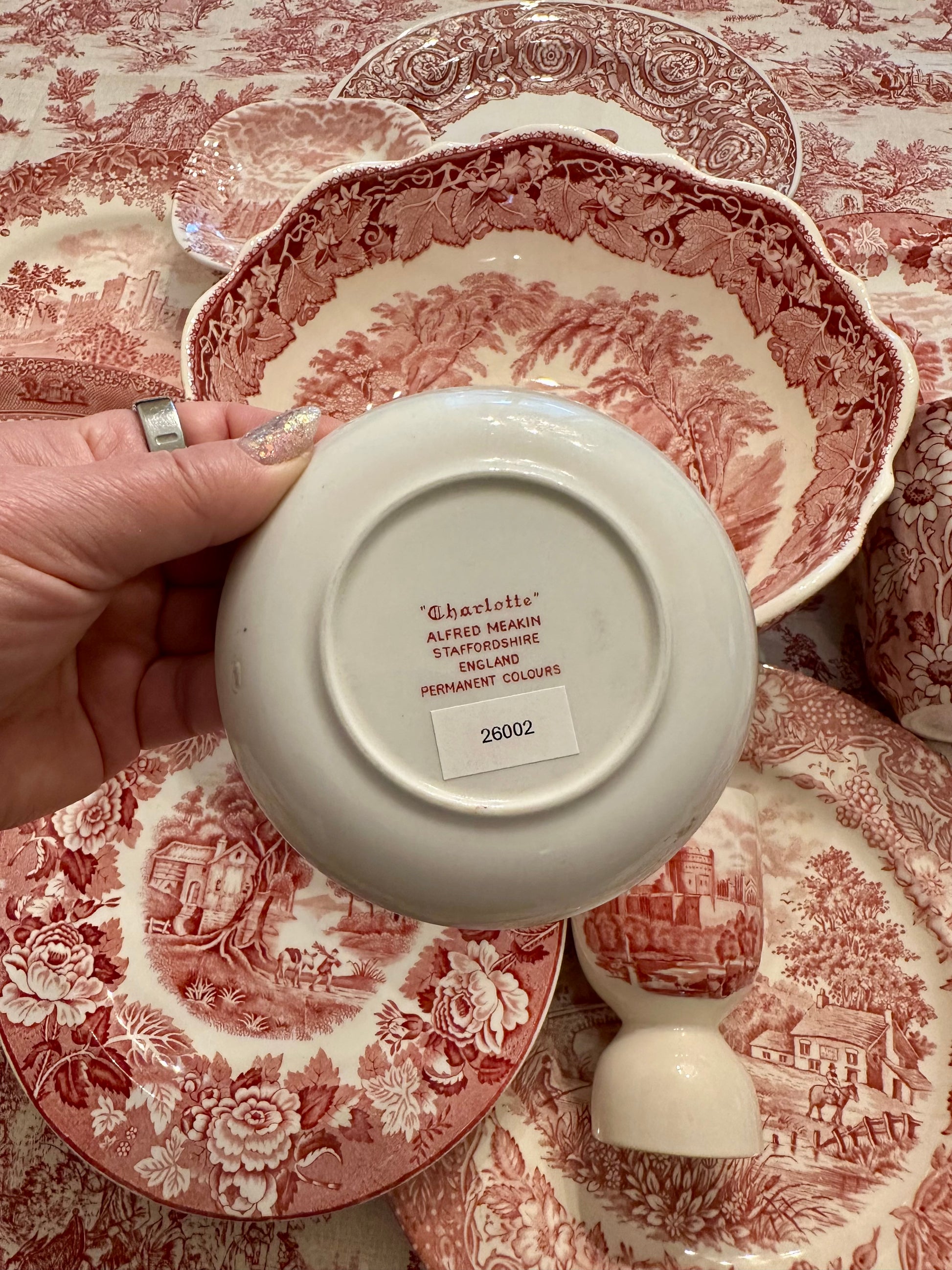 Alfred Meakin “Charlotte” Pink/Red Transferware Butter Pat/Coaster | England, c. 1920s–1940s