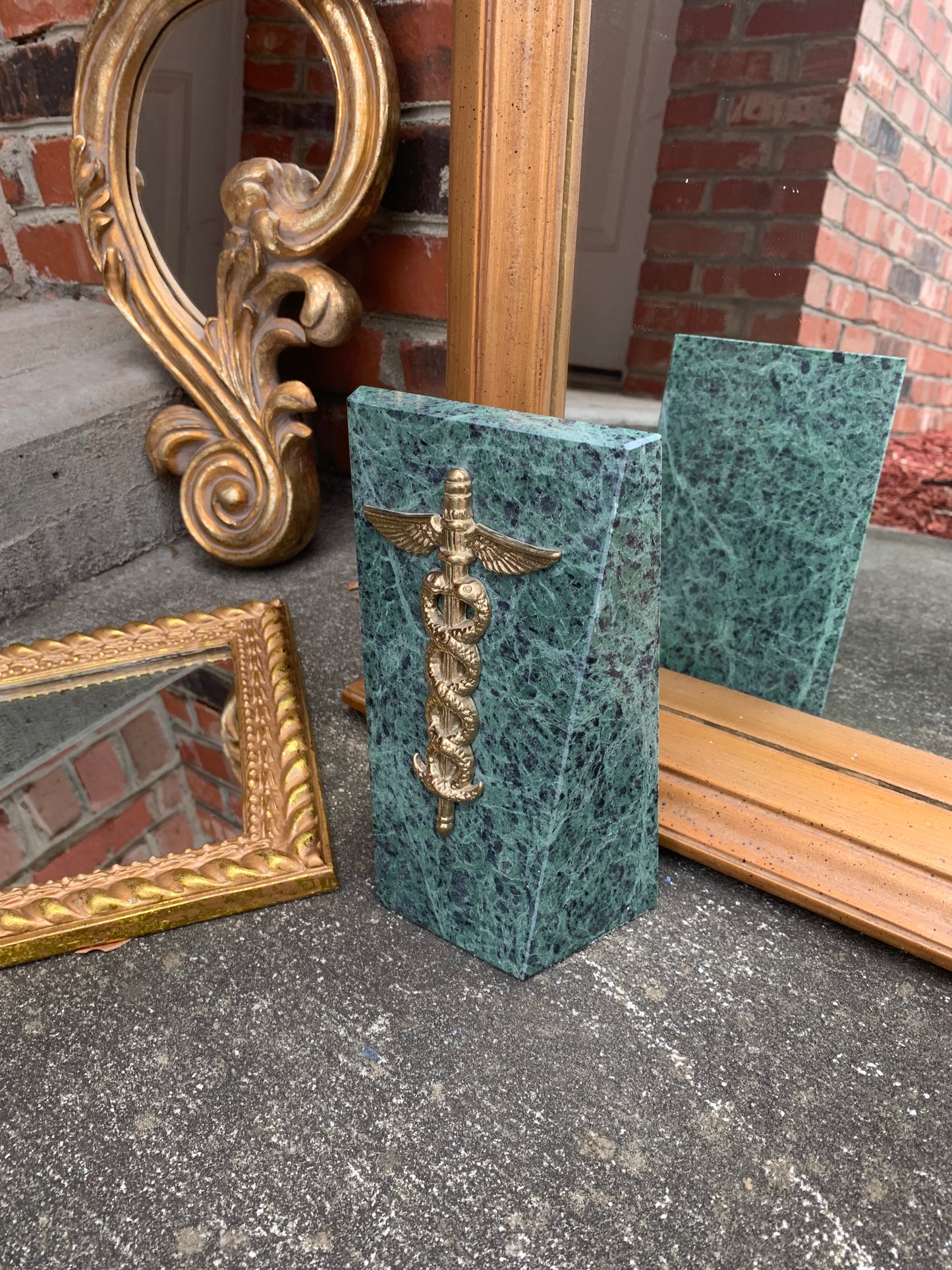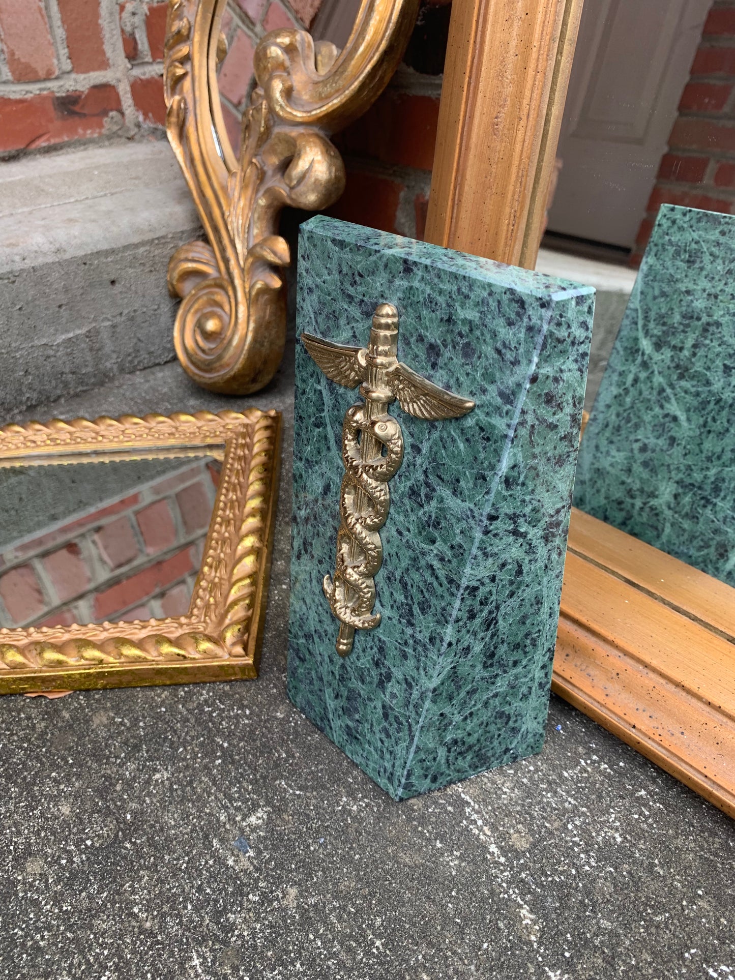 Stunning green marble doctor caduceus medical bookend! - Excellent condition!