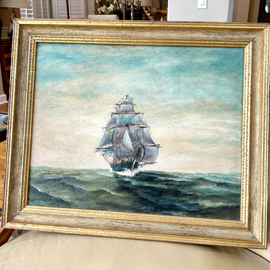 Bold & Beautiful coastal chic vintage tall ship sailing wall art 23.75" x 19.75