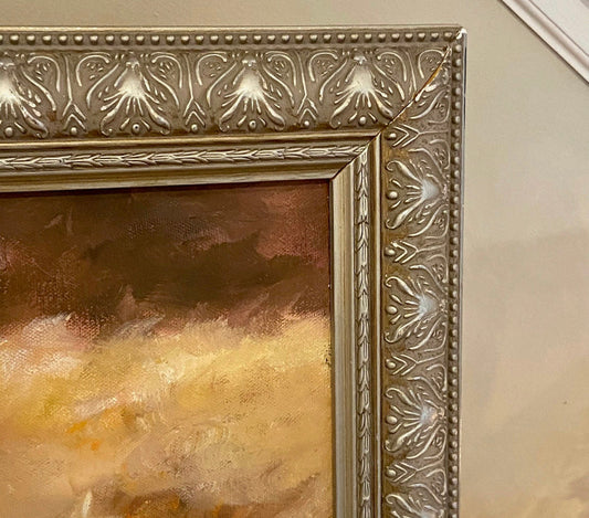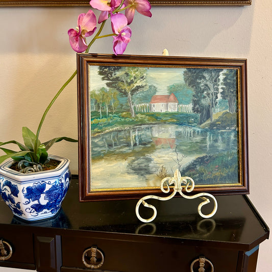 Warm, rustic landscape waterfront original oil painting 16 x 13