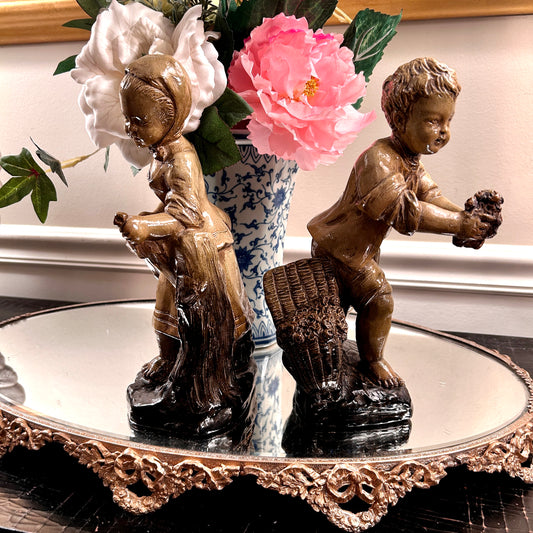 Vintage designer BORGHESE pastoral statues boy & girl with boutiques 10 x 6