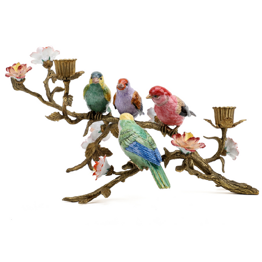 Danny's Fine Porcelain - Candle Stand With Multi Birds Hand Painted With Bronze:16x10.5x9