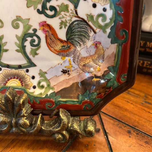 Delightful Chinoiserie rooster square plate 8.5d