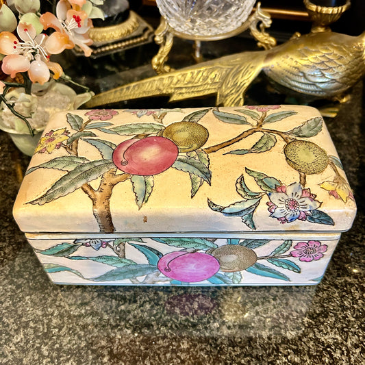 Beautiful large chinoiserie fruit botanical leaf lidded box