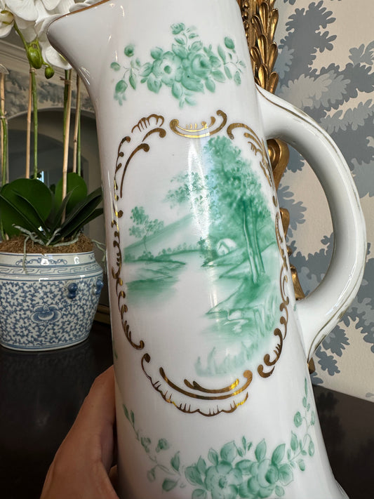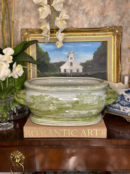 STUNNING- 19Lx8.5Wx7H- Oval Centerpiece Basin - Green Scene