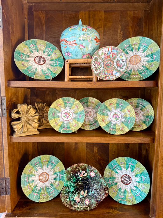 Vintage Green Jade Garland Fine China Set of 11: 4 Dinner Plates + 4 Salad/Soup Bowls + 2 Large 14” Platters + 11” Serving Bowl