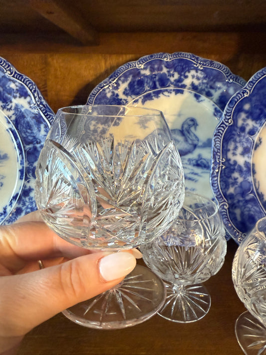 Set of 4 Vintage Crystal Brandy Snifters / Cordial Glasses