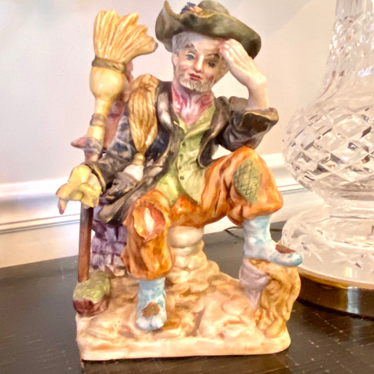 Charming vintage porcelain botanical candle stick lamp w original shade