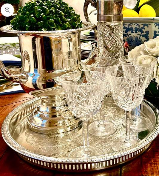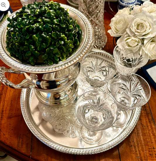 Sparkling statuesque pair of vintage palm silver buffet lamps.