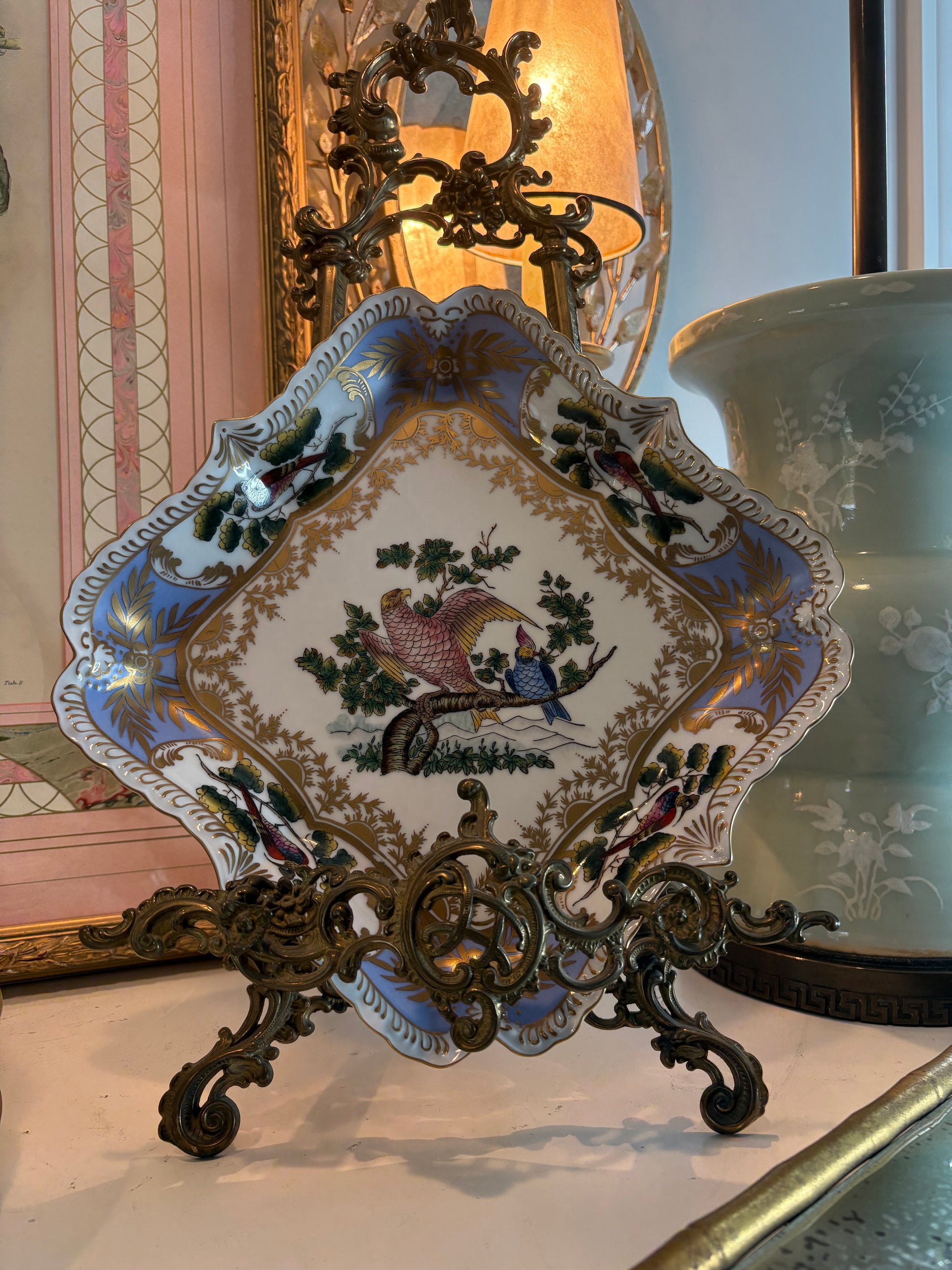 A stunning accent for collectors of Chelsea House porcelain or anyone who appreciates classic bird-themed décor and gilded detailing.