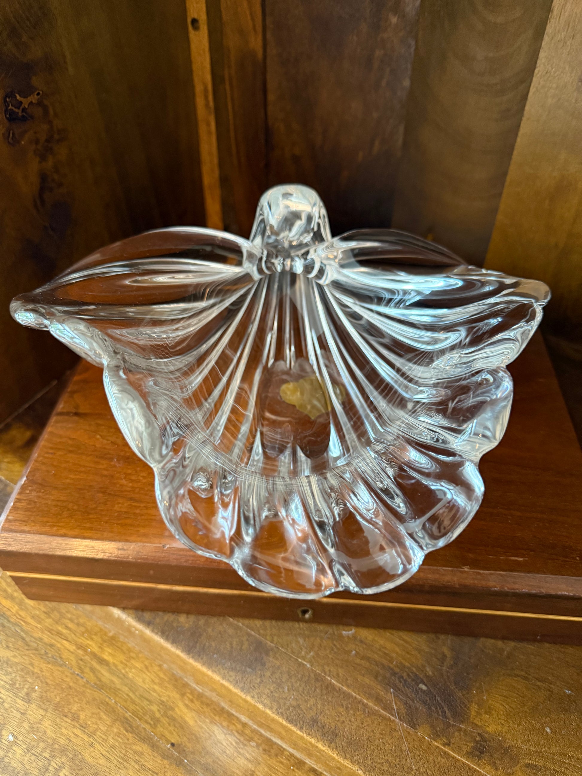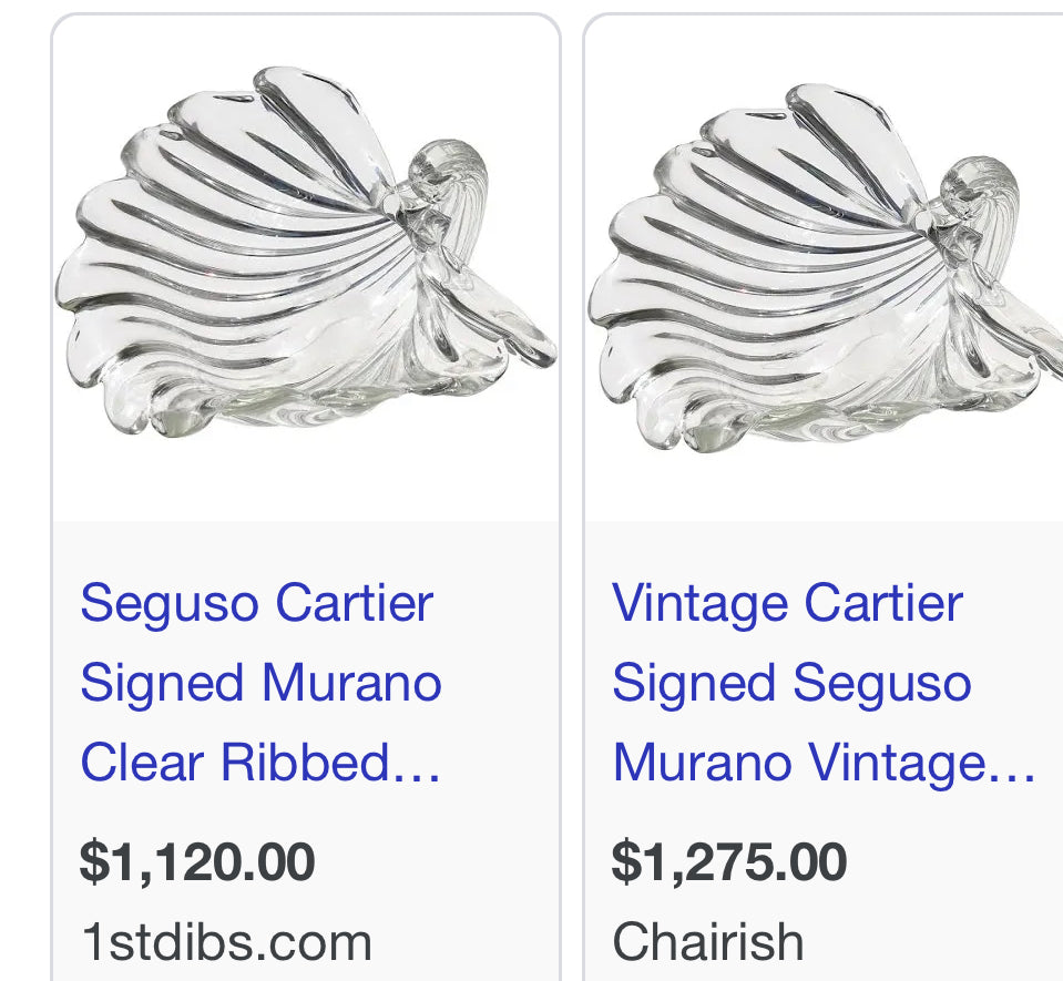 It is an Italian hand blown crystal clear ribbed shell bowl. The design is documented to designer Archimede Seguso, created exclusively for Cartier.