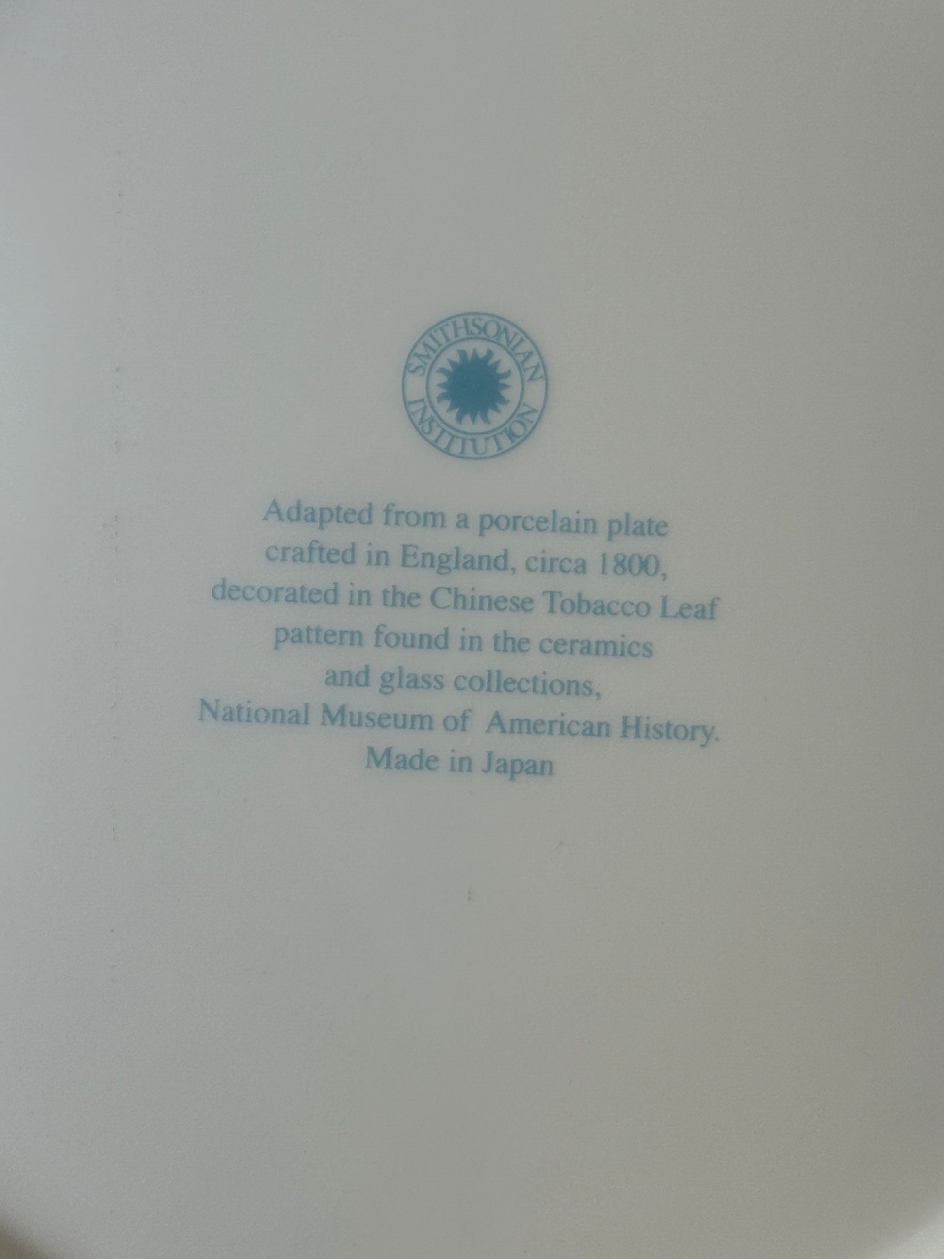 Smithsonian Tobacco Leaf Porcelain 10.5”D Plate & Server | Museum Collection Reproduction, Made in Japan