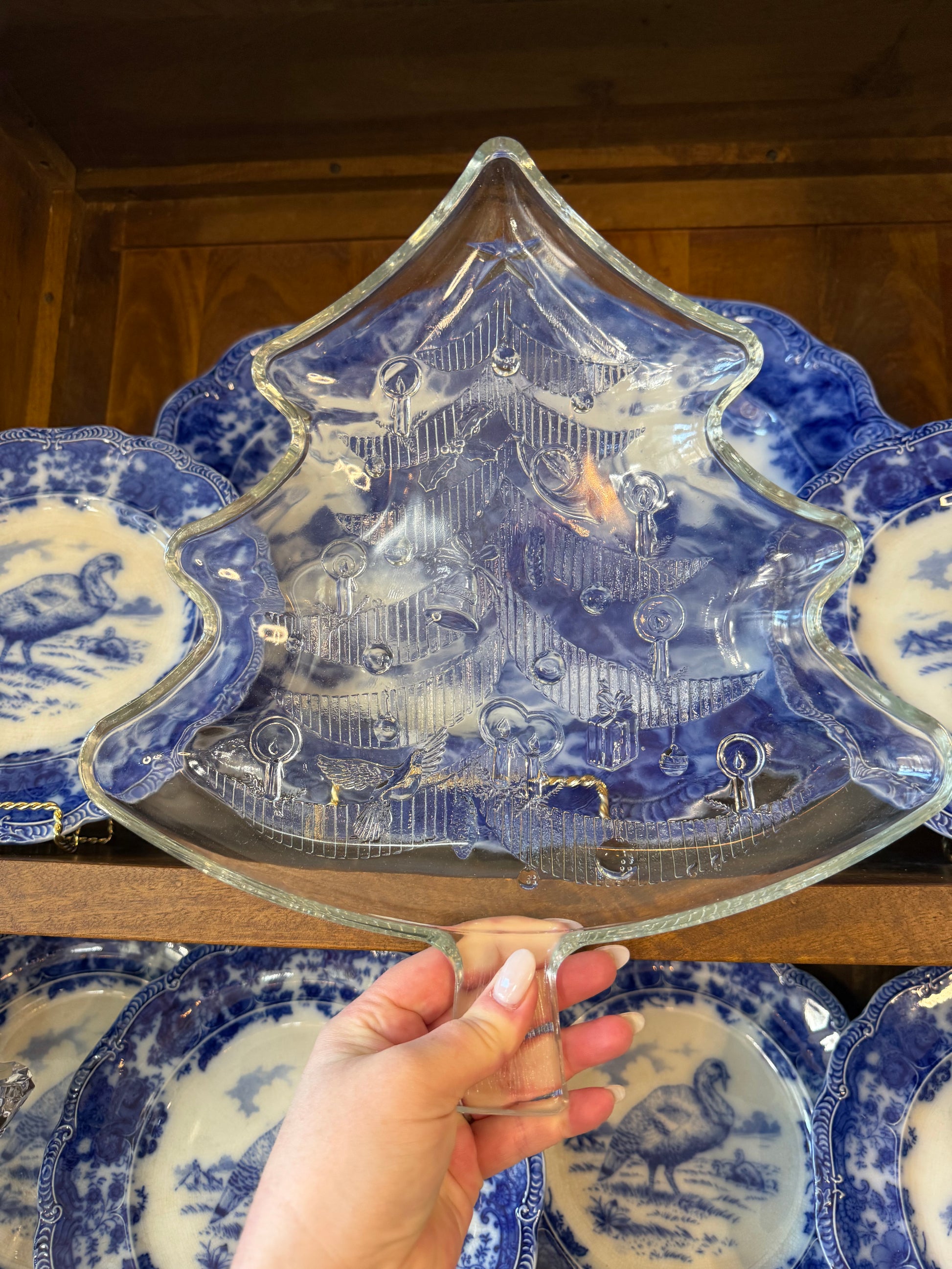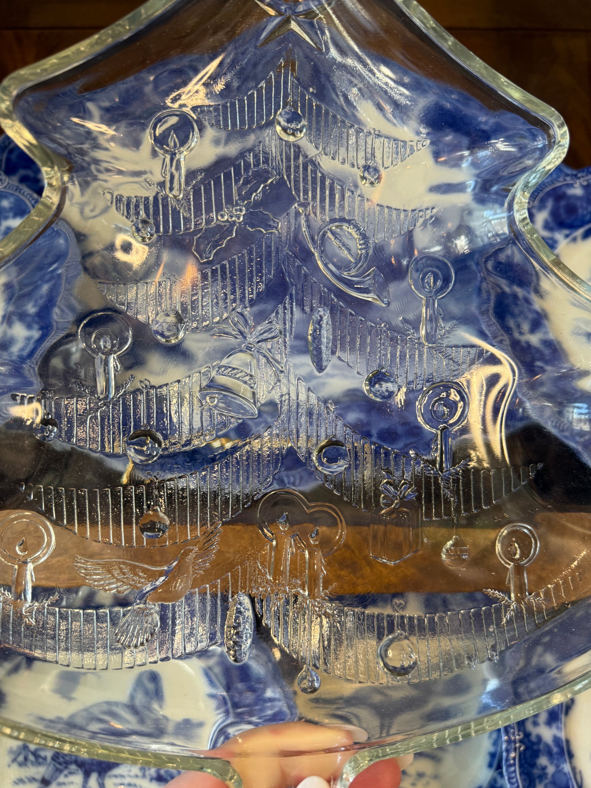 Vintage 14x12" Indiana Glass Christmas Tree Serving Tray