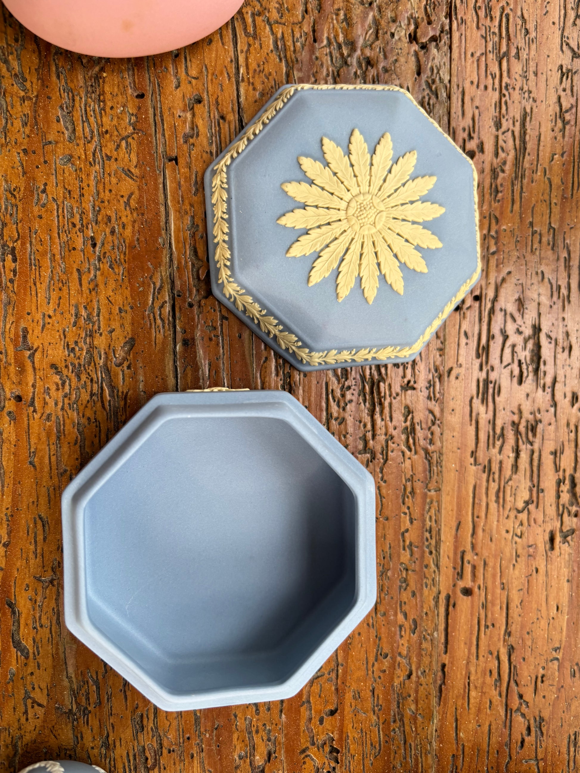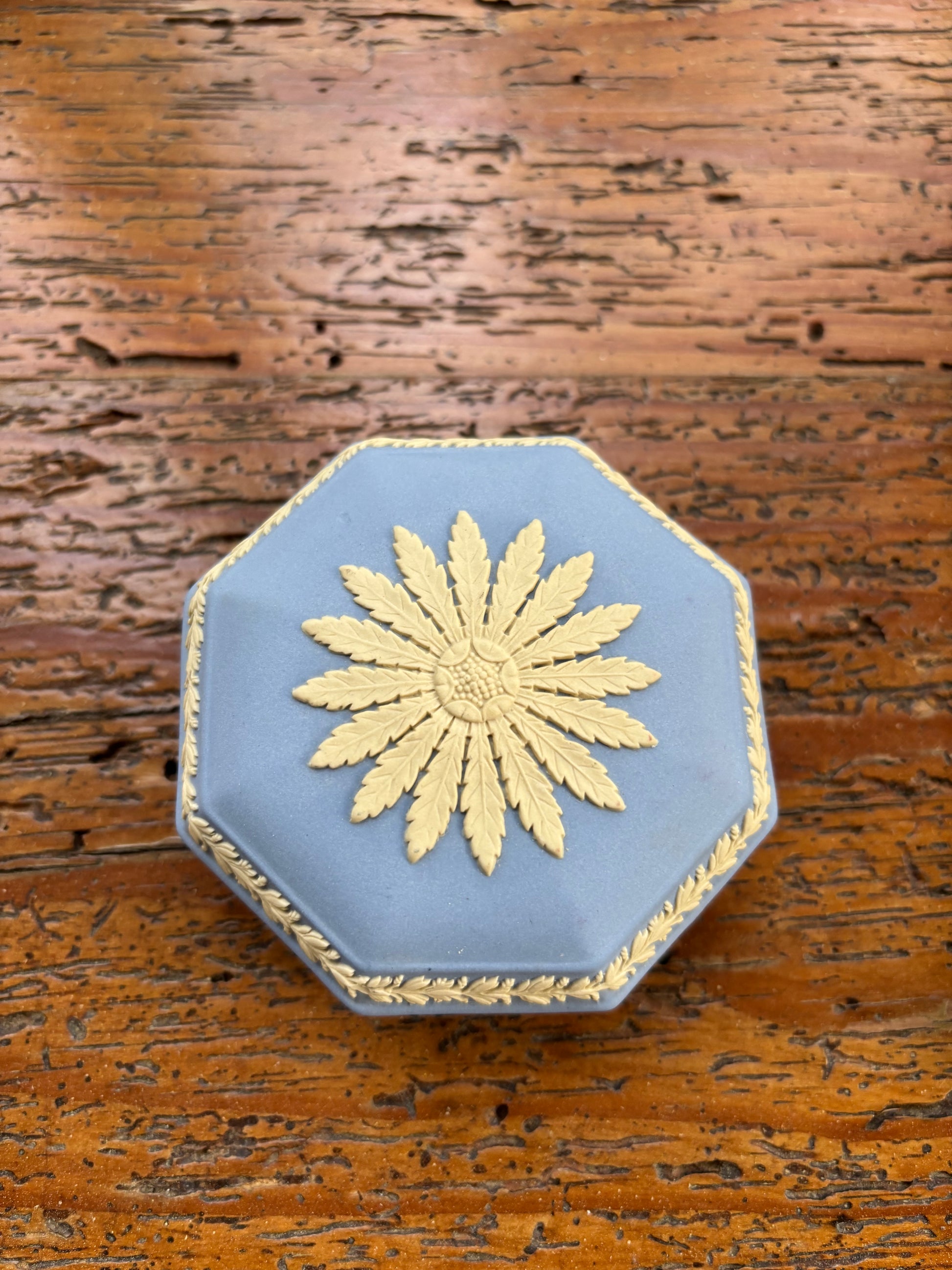 Wedgwood flower trinket box! Measures 3 1/4” x 3 1/4”. Marked on bottom. Has tiny chip on top. As is!