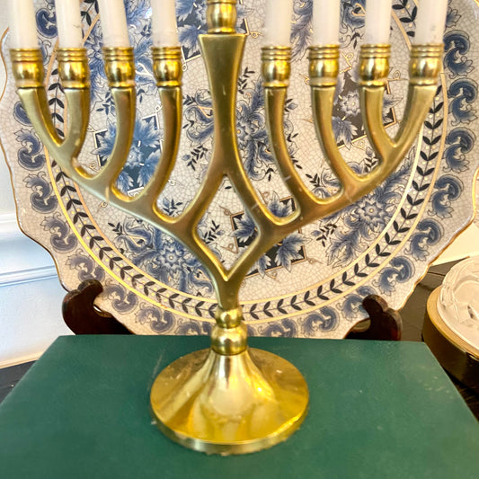 Vintage brass Menorah candle holder for Hanukkah holiday