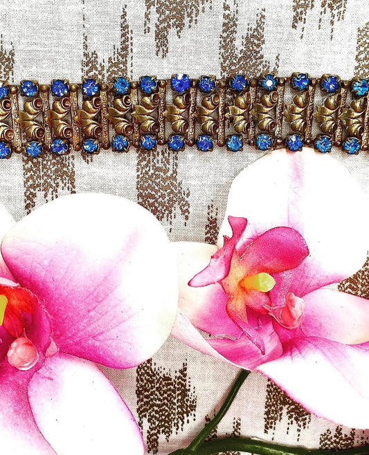 Stunning Antique 1920’s Art Nouveau Box Link London Blue/Brass Bracelet