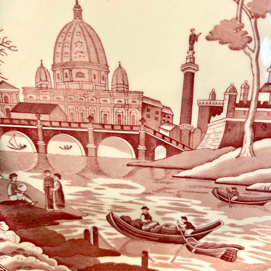 Massive designer Spode red & white toile charger plate platter 13,5 d