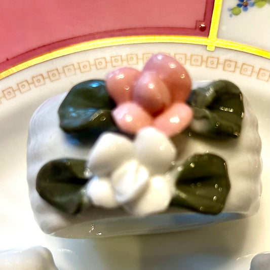 Set of 6 white & pink flower napkin ring holders