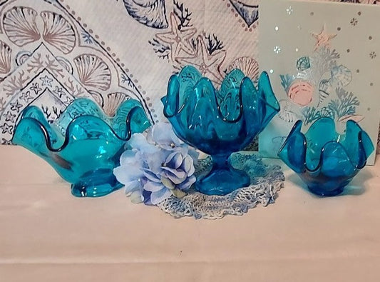 Viking Glass Blue compotes, set of 3