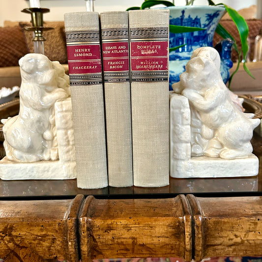 Danny’s Fine Porcelain: Large 16Lx3.5Wx9H Blue & White Spaniel Dog Figure Pair W/ Gold Accent