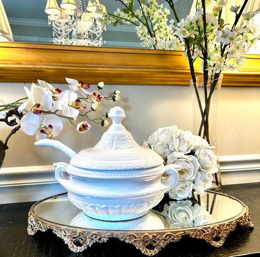 Designer vintage chic white 3 piece tureen planter made in Portugal